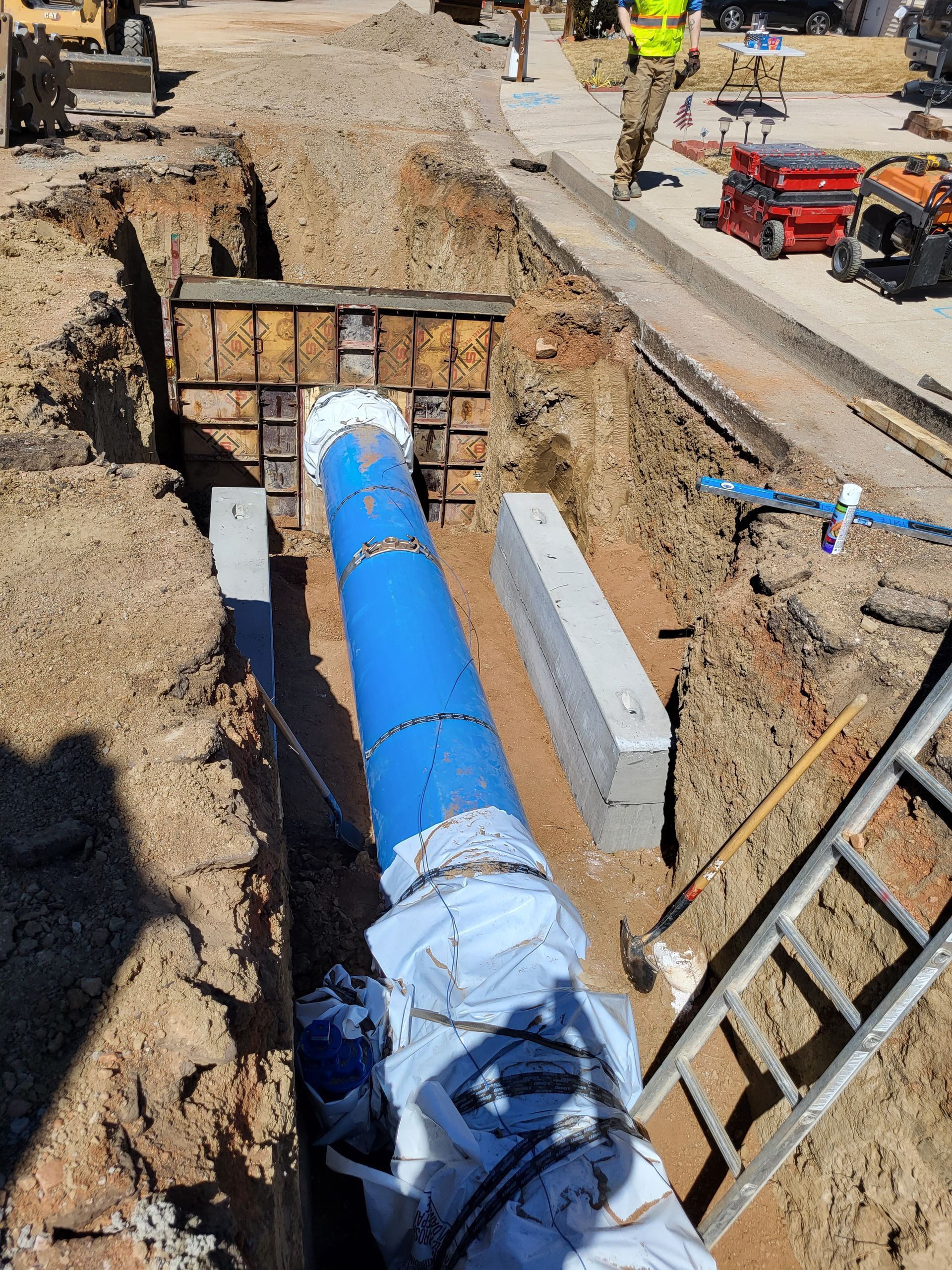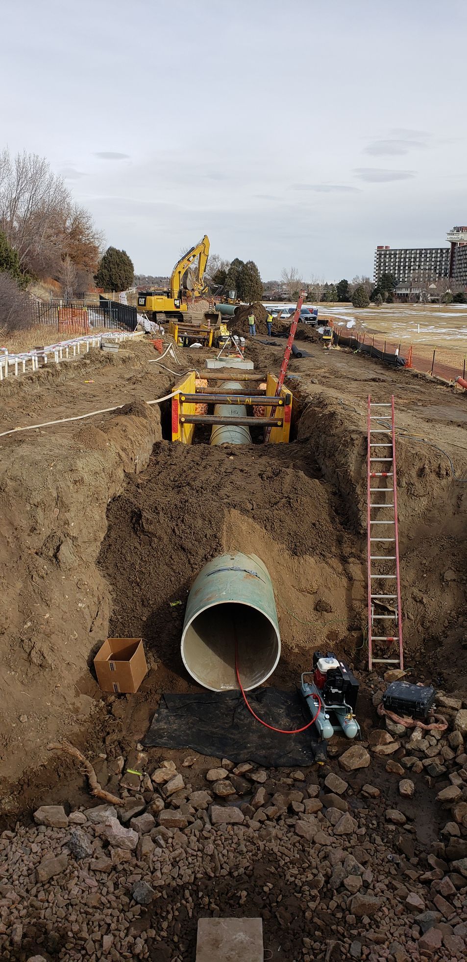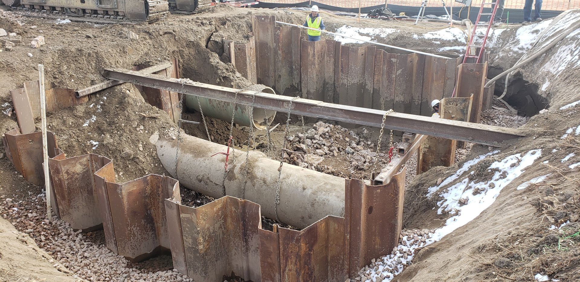 Working with the Pueblo Board of Water Works, a 30 inch water transmission mainline was replaced across the Fountain Creek on Pueblo’s northside. This included the process of boring under the creek bed in order to connect the line on both sides of the body of water.